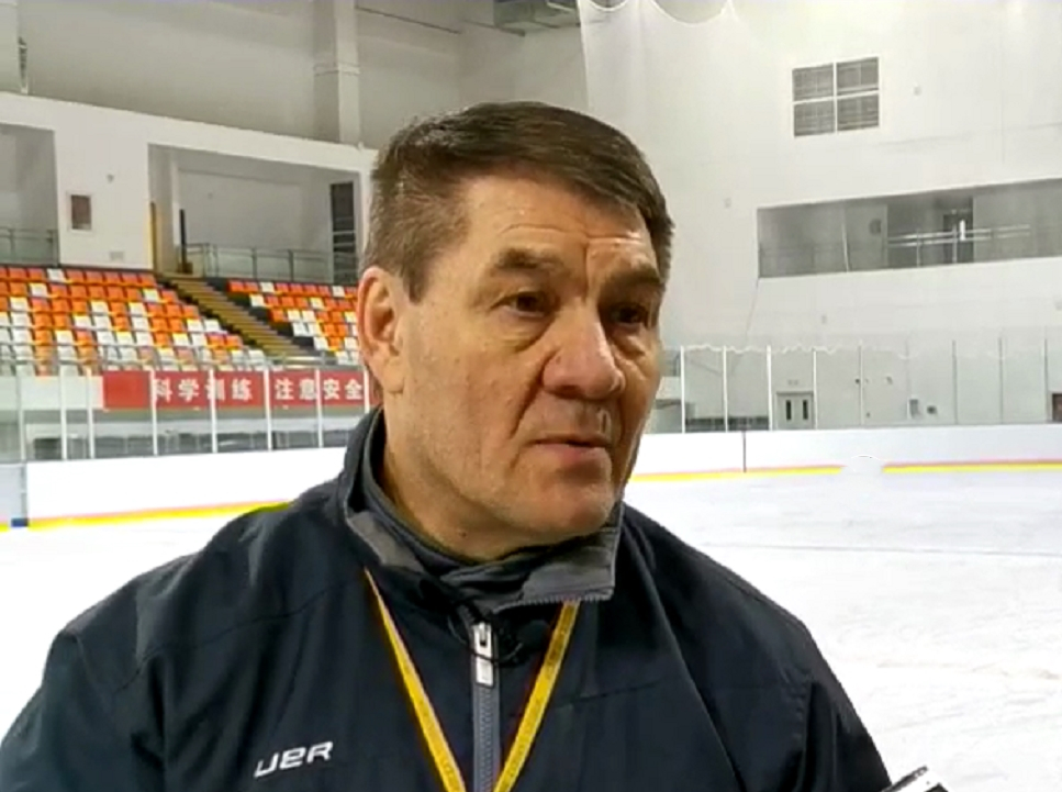 在距离轮椅冰壶队训练馆仅一墙之隔的冰面上,中国残奥冰球集训队正在训练。冰球馆内体感气温接近零下,然而在俄罗斯籍教练尼古拉的带领下,集训队的小伙子们训练得热火朝天。