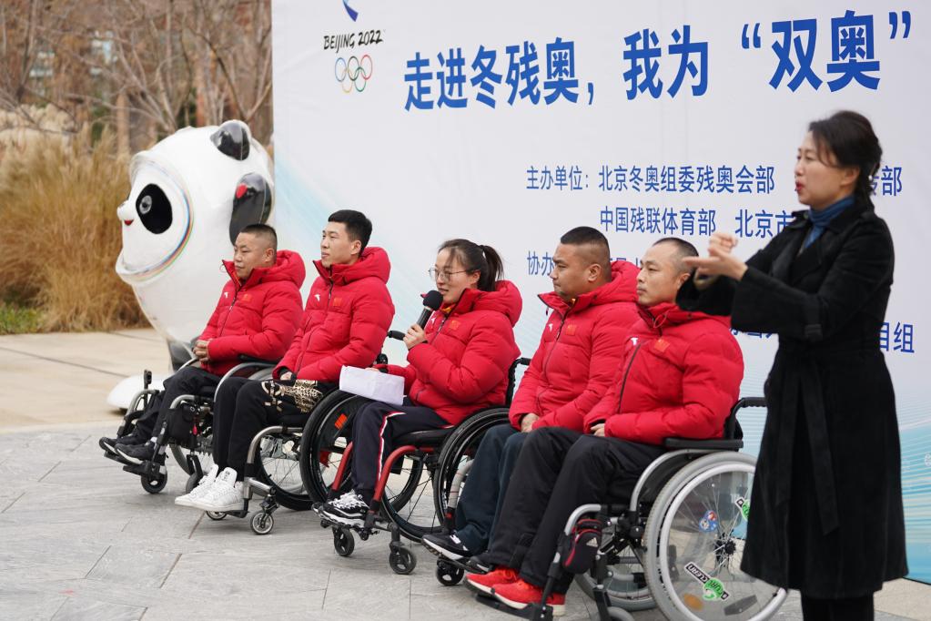 2020年12月2日,2020年国际残疾人日暨第五届中国残疾人冰雪运动季活动在北京冬奥组委举办。图为残疾人国家队运动员参加活动。新华社记者鞠焕宗摄