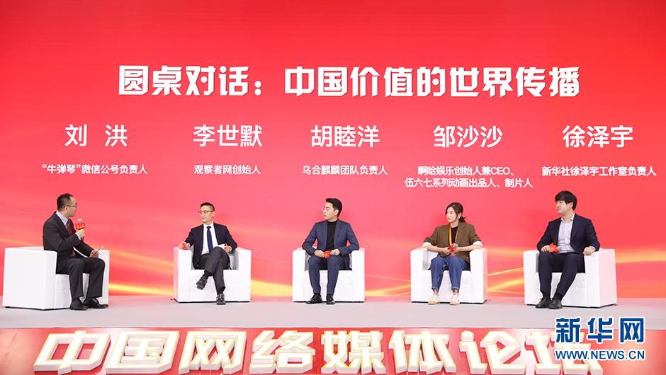 由新华网承办的2021中国网络媒体论坛内容论坛于11月24日在广州举行,各界嘉宾围绕“传播:塑造价值”展开探讨和交流。图为圆桌对话一:中国价值的世界传播。新华网 陈杰摄