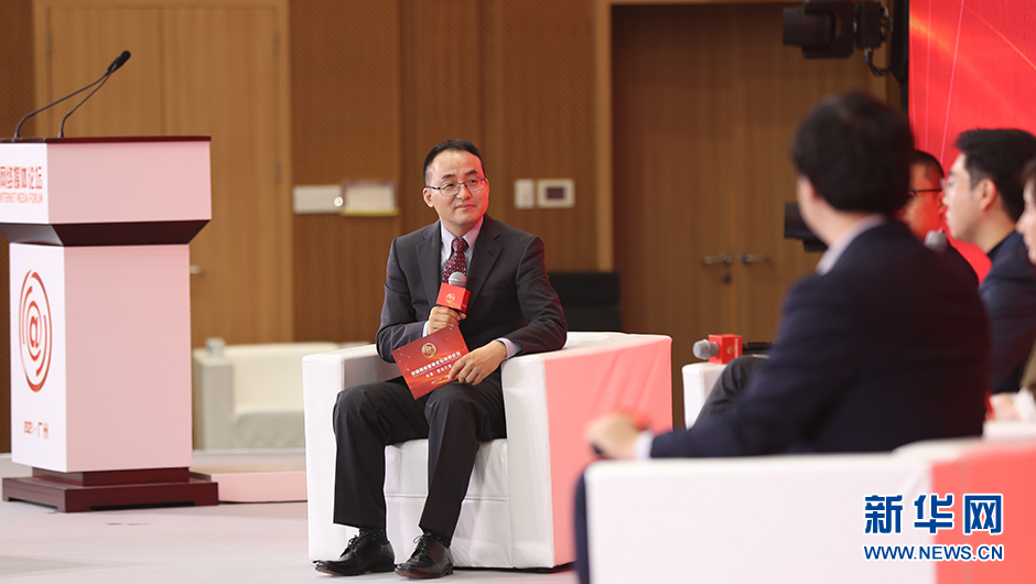 由新华网承办的2021中国网络媒体论坛内容论坛于11月24日在广州举行,各界嘉宾围绕“传播:塑造价值”展开探讨和交流。图为“牛弹琴”微信公号负责人刘洪。新华网 陈杰摄