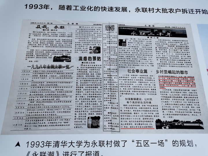 张家港市永联村的村史馆里,当年“村报”记载了上世纪90年代“造城”进程。(2021年9月4日)新华每日电讯记者段羡菊摄