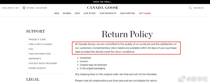 近日,加拿大鹅品牌“不得退换”的“霸王条款”引发舆论热议。12月1日,上海市消保委就加拿大鹅退换货条款的公平性和合理性问题约谈企业,发现加拿大鹅所表述的公司退换货流程与消费者反映的实际情况多有出入。同时,其全球官网上表述退换货政策为“30日无理由退货”,但参与约谈的相关负责人却表示,加拿大鹅并不在中国大陆执行这一条款,涉嫌“内外有别”。(记者周蕊)