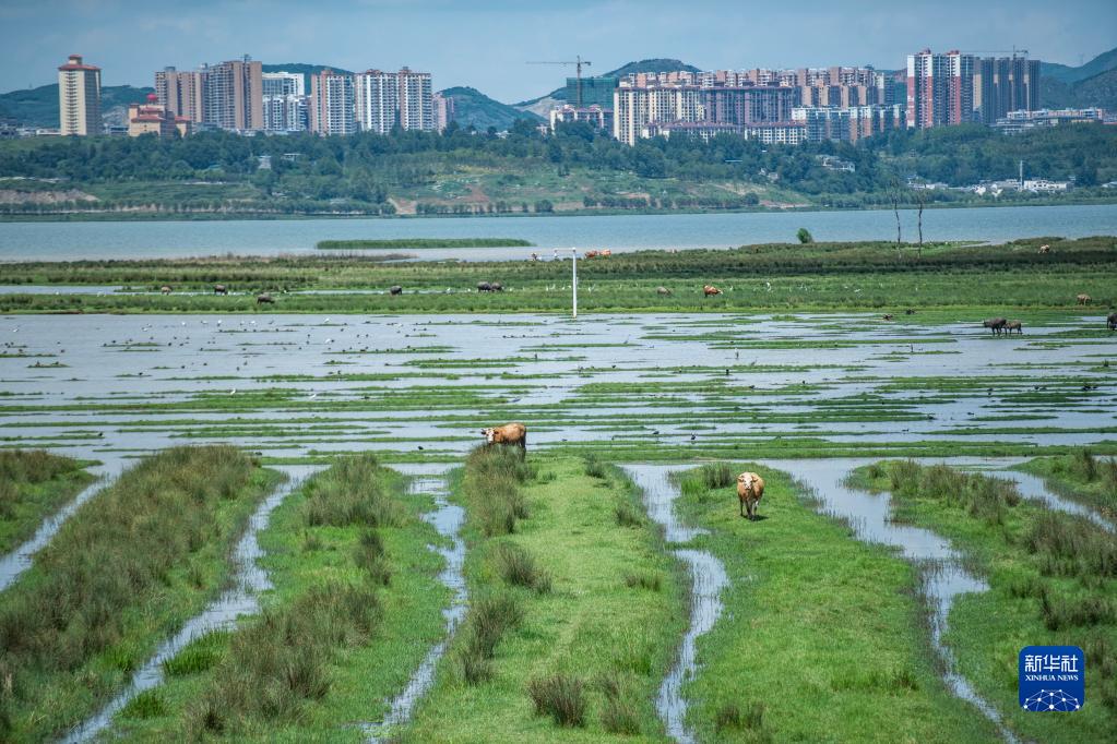 贵州省威宁县村民在草海镇放养的牛(7月7日摄)。新华社记者 陶亮 摄