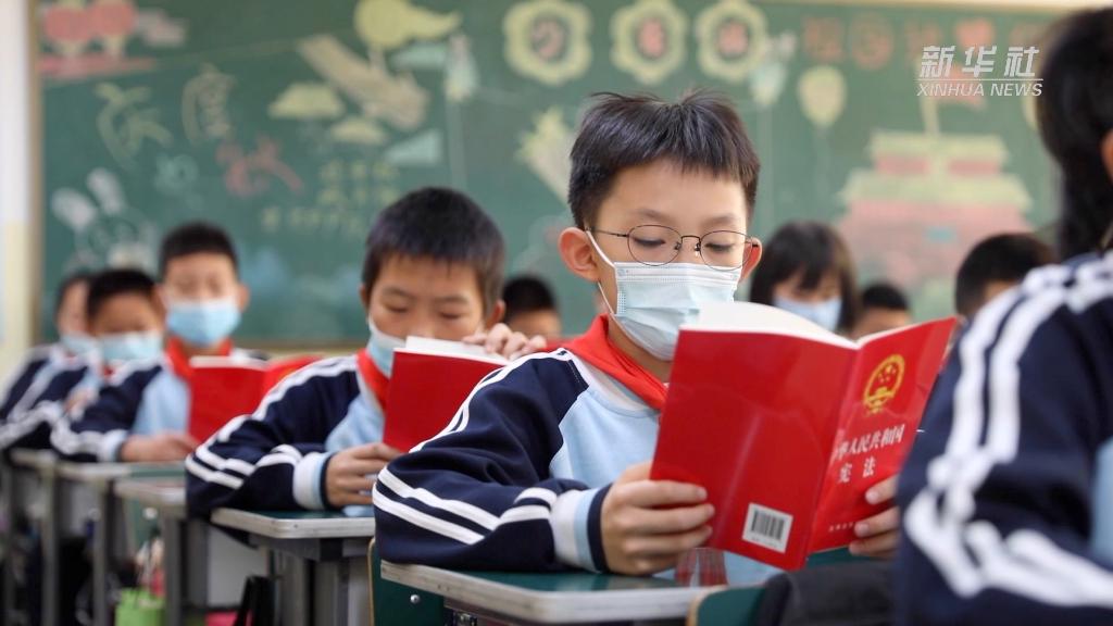 在第八个国家宪法日到来之际,天津市西青区实验小学近期开展了一系列宪法宣传活动,鼓励全校师生参与其中。课堂上,学生们齐声诵读宪法。课后,检察院工作人员为师生普及宪法知识。