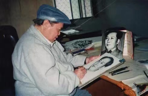 刘文西正在创作毛主席肖像画。