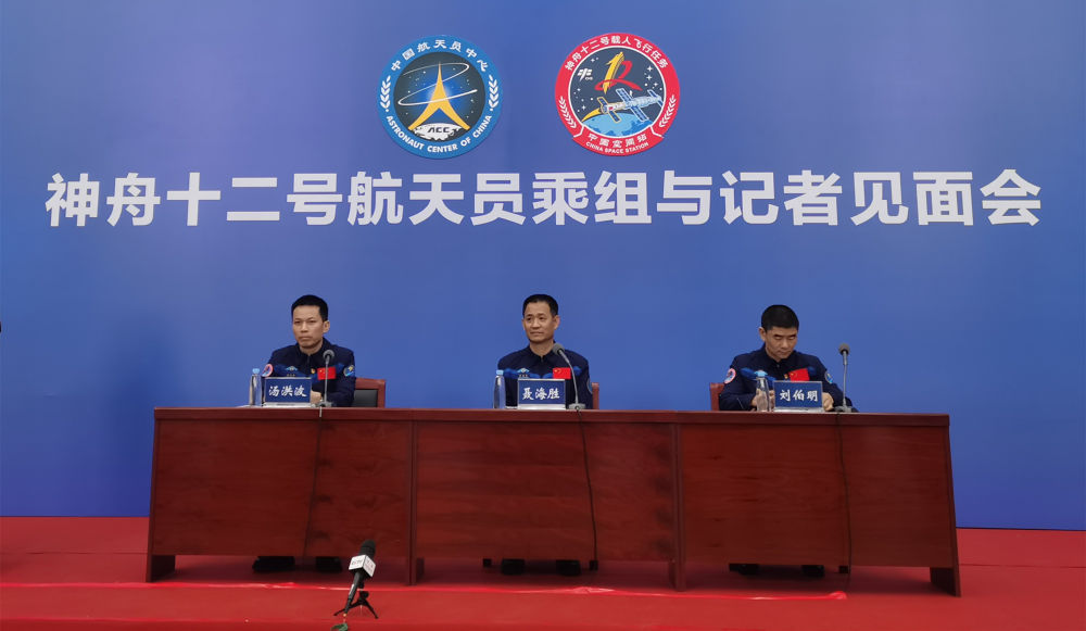返回后首次公开亮相的神舟十二号航天员