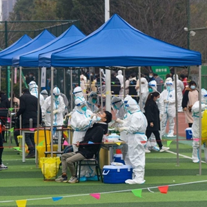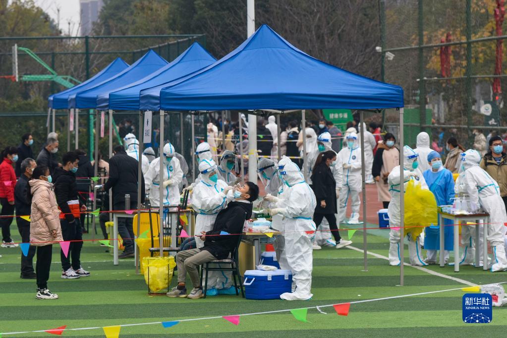 12月8日,在浙江省宁波市镇海区中官路体育公园核酸检测点,人们接受核酸采样。新华社发(胡学军摄)