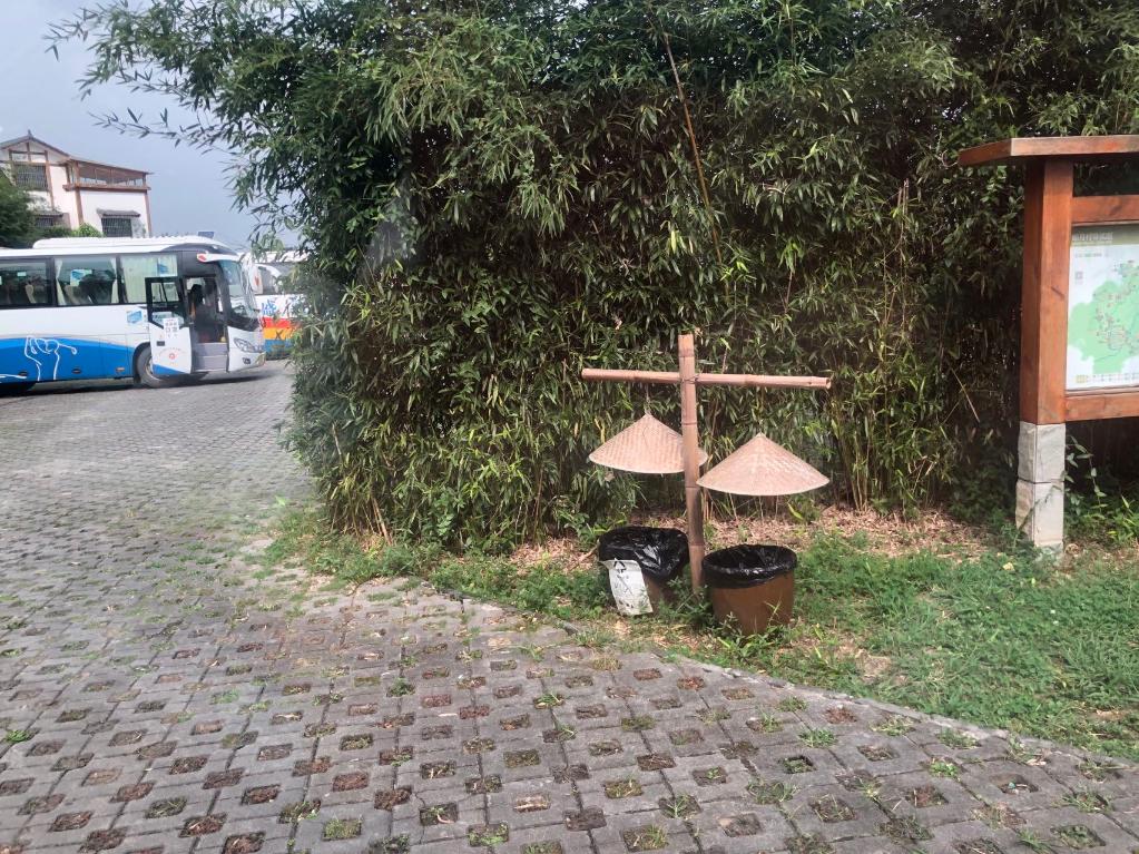 明月村路边“戴”斗笠的垃圾桶。新华社记者董小红 摄