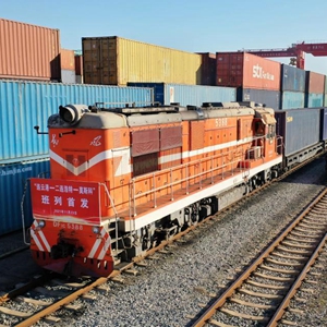 “连云港—二连浩特—莫斯科”中欧班列在江苏连云港中哈物流基地整装待发(11月23日摄,无人机照片)。新华社发(王健民 摄)