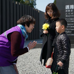 来自日本的黑田薰是纪念馆的第一位国际志愿者。1997年,她第一次参观纪念馆,看着眼前的森森白骨,她开始尽己所能将真相传播给日本民众,并在2008年戴上“紫金草”的徽章,成为一名国际志愿者。