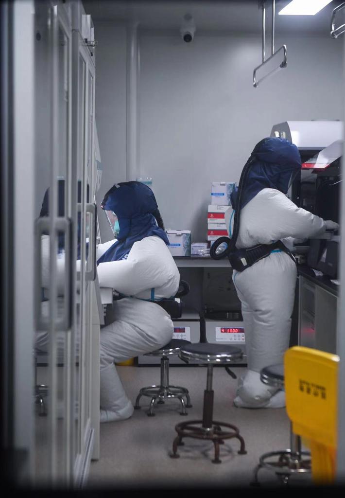 12月12日,新冠肺炎定点收治医院杭州市西溪医院检验科工作人员在实验室内进行核酸检测。(新华社记者 徐昱摄)