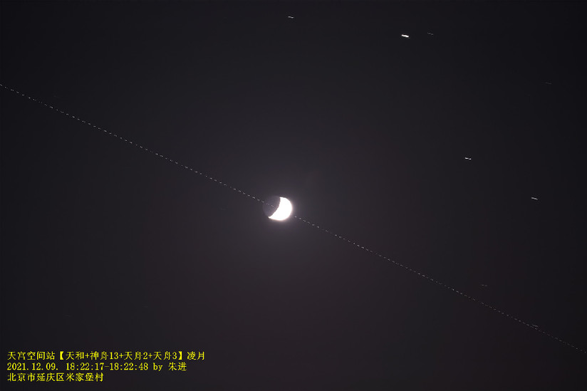 12月9日,在北京上空拍摄到的中国空间站“凌月”。朱进 摄