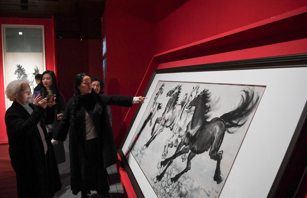 12月19日,观众在“大奇至美”徐悲鸿经典作品展上观赏画作。新华社记者王全超摄