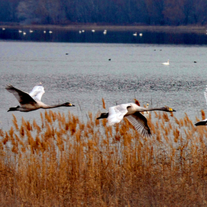 黄河三门峡境内的天鹅。新华社记者 刘诗平摄