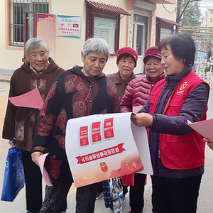 11月29日,山东省济宁市任城区济阳街道楼长给居民宣传人大换届选举有关知识。(新华社发)