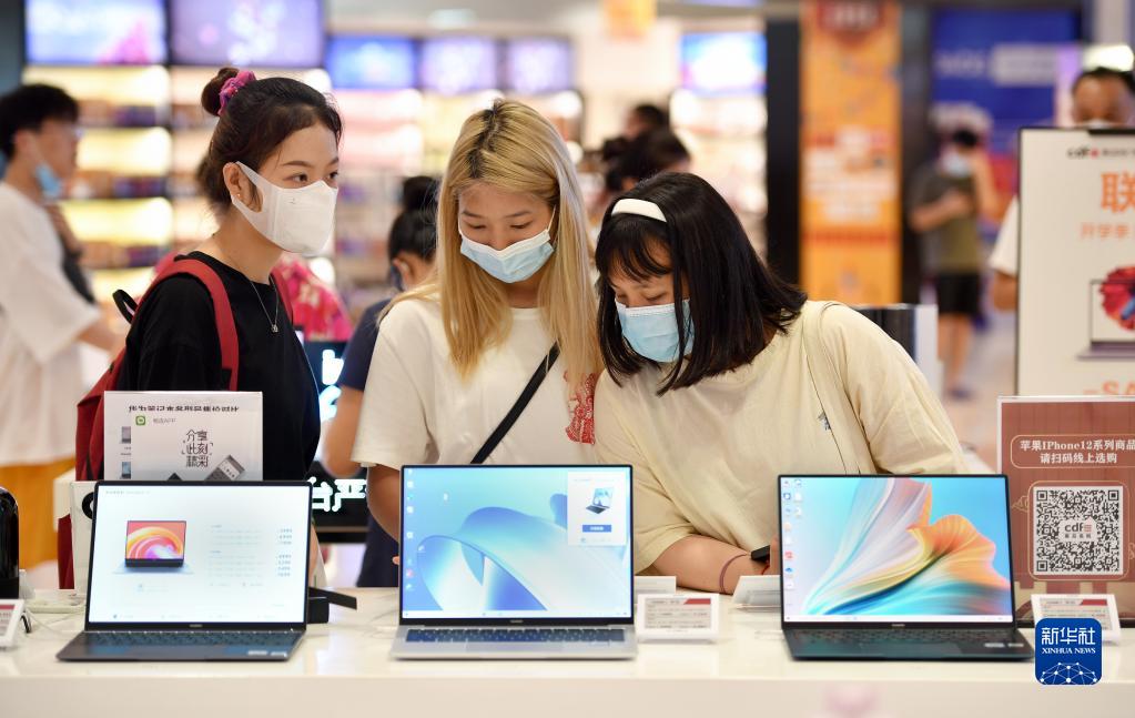 顾客在海口日月广场免税店购物(7月2日摄)。新华社记者 郭程 摄