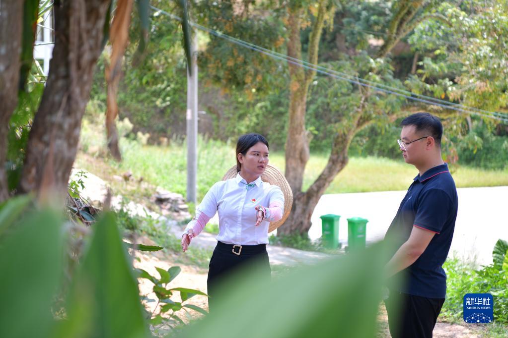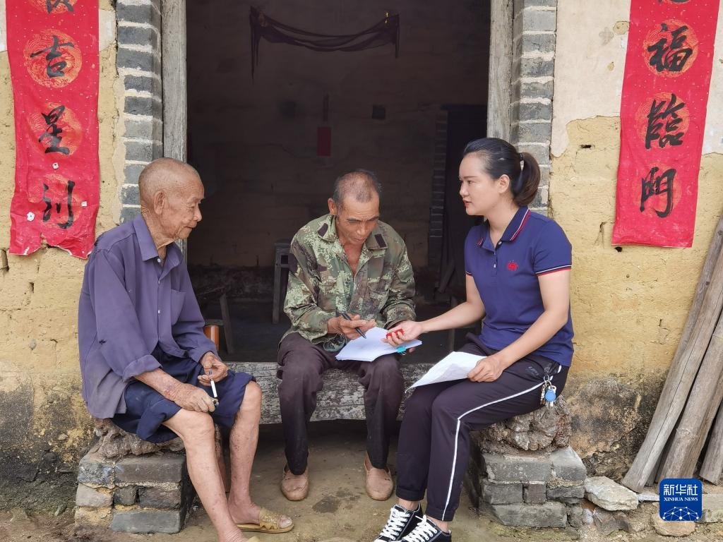 李春燕(右)走访村民了解情况(6月16日摄)。新华社发