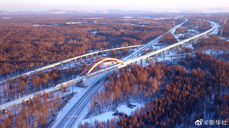 24日,沈阳至佳木斯高铁长白山至敦化段开通运营,长白山正式迈入高铁时代。长春至长白山最快2小时18分钟可达,从北京乘高铁抵达长白山最快只需7.5小时,极大方便各地冰雪运动爱好者前往长白山体验优质冰雪资源。据介绍,随着高铁开通,长白山与北京、长春、沈阳、大连、哈尔滨等高铁沿线城市对接,大大缩短往返时间。(记者段续、邵美琦、林宏)(中国铁路沈阳局集团有限公司供图)