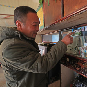 12月8日,张同学在家中指着上学时照片中的自己。新华社记者 杨青 摄