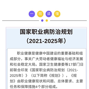 《规划》要求,到2025年,职业健康治理体系更加完善,职业病危害状况明显好转,工作场所劳动条件显著改善,劳动用工和劳动工时管理进一步规范,尘肺病等重点职业病得到有效控制,职业健康服务能力和保障水平不断提升,全社会职业健康意识显著增强,劳动者健康水平进一步提高。