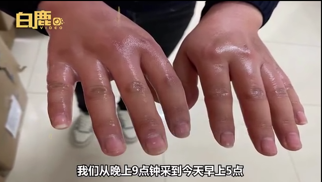 不少医护双手冻得冰凉红肿