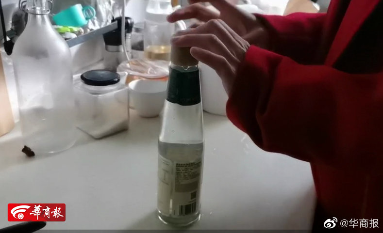 随后又将家中用完的酱油瓶灌满热水