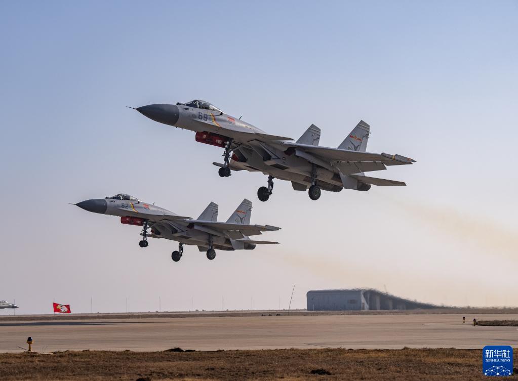 海军航空大学某基地开展双机编队训练,飞行教官驾驶歼-15战机起飞(12月10日摄)。新华社发(万全 摄)