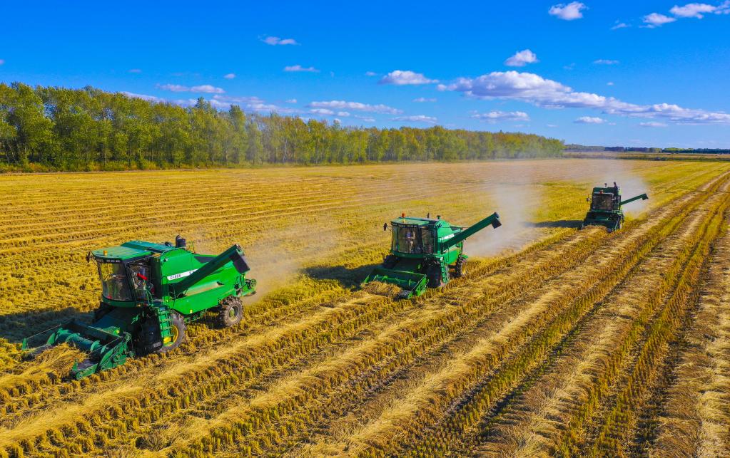 2021年9月14日,北大荒集团绥滨农场有限公司秋收现场。受访者供图