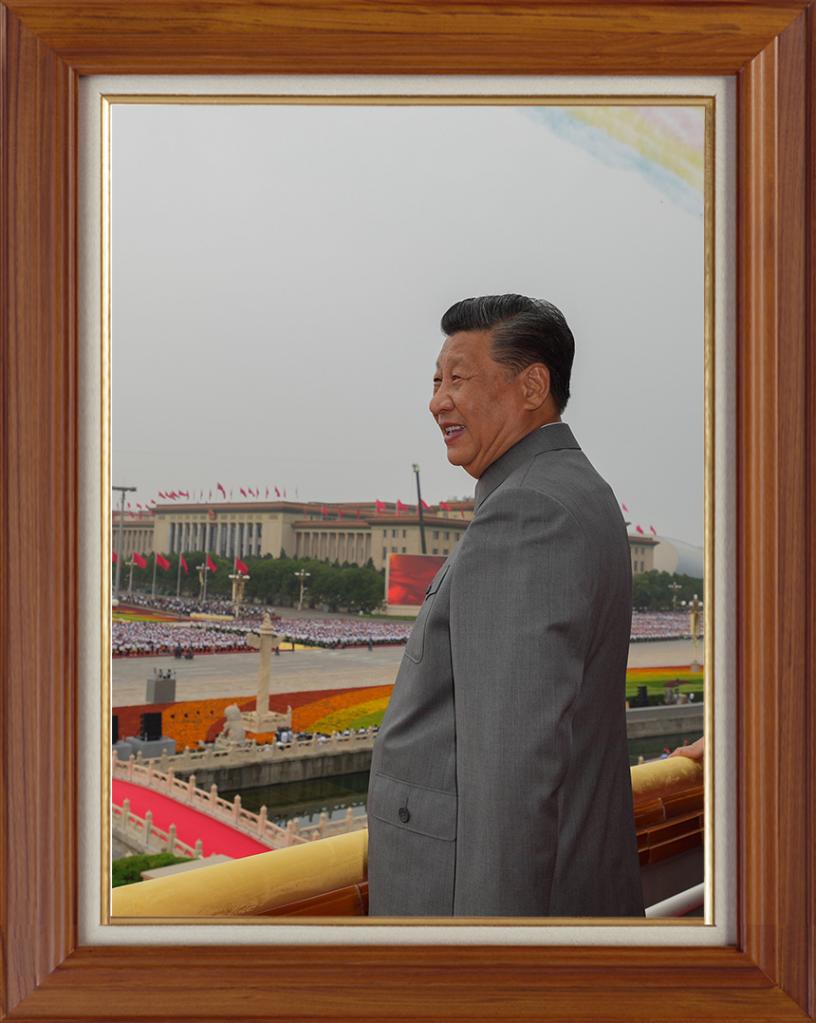 这一张工作照,是习近平连任国家主席后,向宪法宣誓。自发表2019年新年贺词起,就一直摆在书架上。