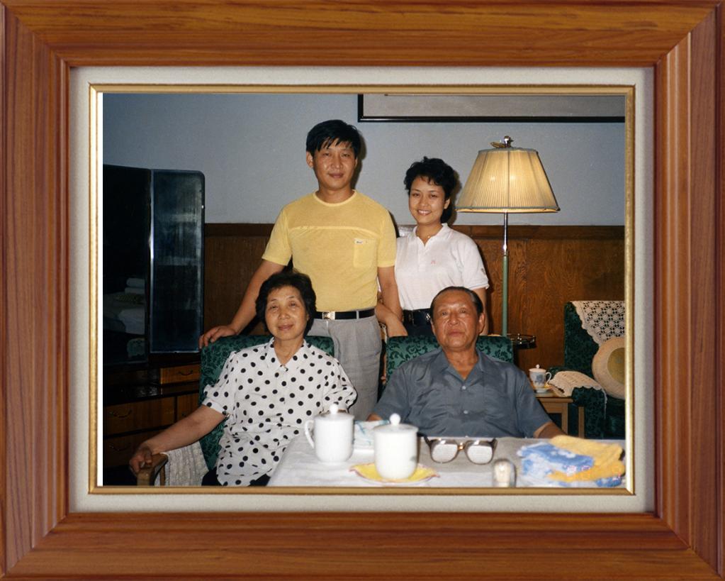 一张是习近平与夫人彭丽媛同父亲习仲勋、母亲齐心的合影。