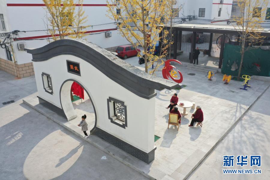 居民在河南省焦作市温县一处改造后的小区内休闲(2020年11月15日摄,无人机照片)。新华社发(徐宏星 摄)