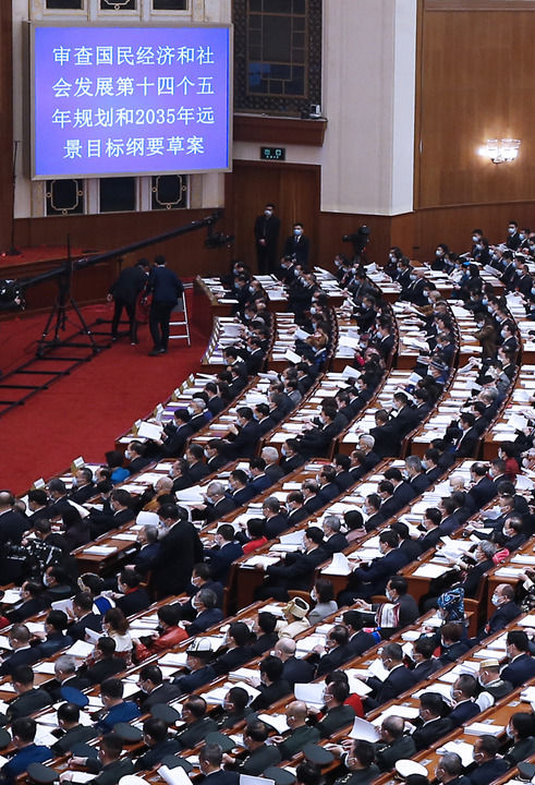 十三届全国人大四次会议表决通过关于国民经济和社会发展第十四个五年规划和2035年远景目标纲要的决议。