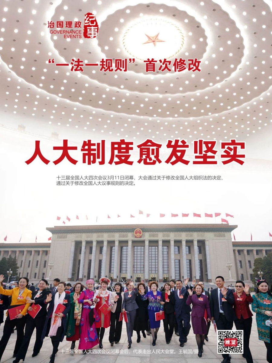3月11日下午,全国人大组织法修改决定、全国人大议事规则修改决定经十三届全国人大四次会议表决通过。