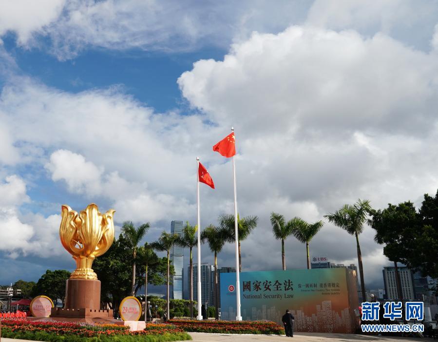 2020年7月1日,香港特区政府在湾仔金紫荆广场举行升旗仪式,庆祝香港回归祖国23周年。这是仪式结束后的金紫荆广场。新华社记者 李钢 摄
