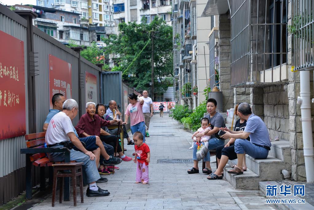 重庆市两江新区人和街道邢家桥社区的居民在楼下休憩(7月19日摄)。新华社记者 徐钦 摄