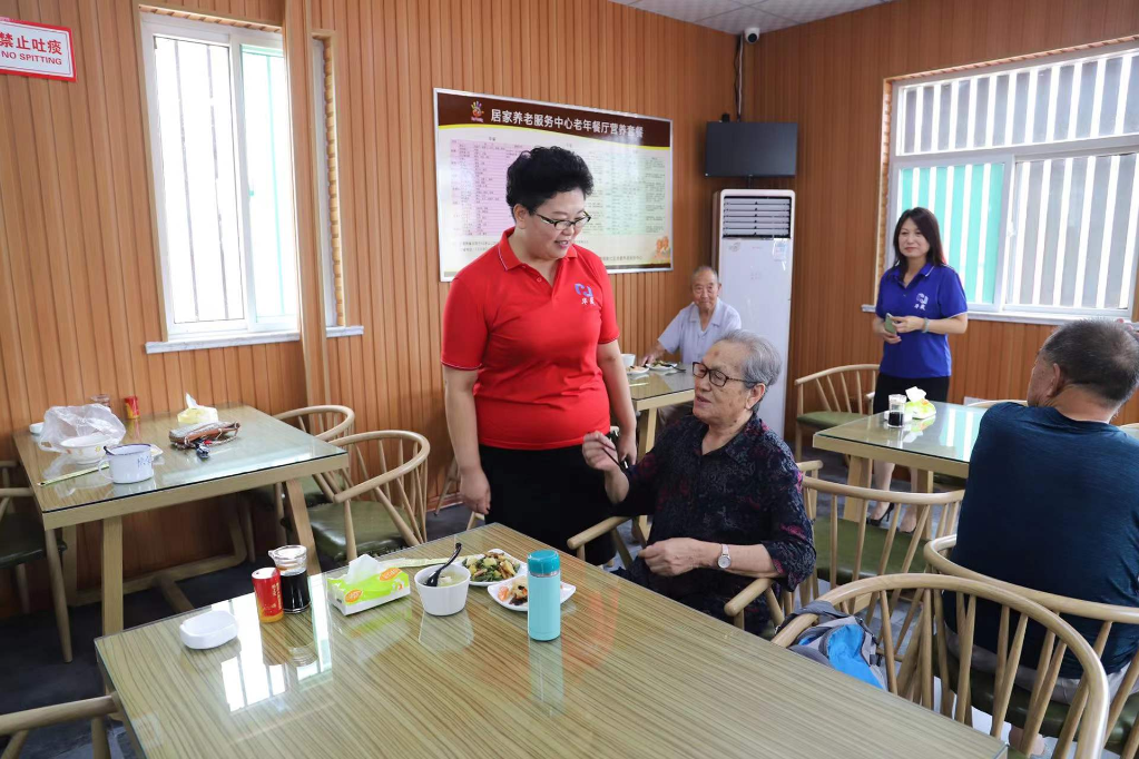 陈丽媛代表向在南苑养老服务中心就餐的袁桂英征求用餐意见。(陈丽媛供图)