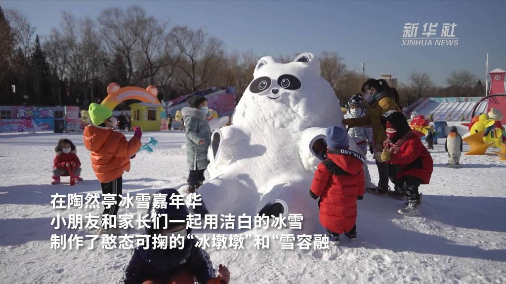 在陶然亭冰雪嘉年华,小朋友和家长们一起用洁白的冰雪制作了憨态可掬的“冰墩墩”和“雪容融”,一同亮相的还有冬奥会特许商品、南极企鹅、冬奥知识科普等,一幅其乐融融的冬奥画面徐徐展开。