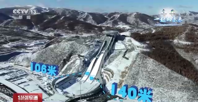 国家跳台滑雪中心将承担北京冬奥会跳台滑雪、北欧两项的比赛。这是我国首座符合国际标准的跳台滑雪场地。两条106米和140米的标准赛道倾斜而下,犹如中国古代文化“如意”的S曲线,因此被形象地称为“雪如意”。