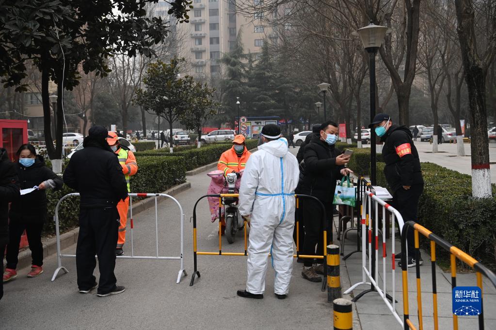 1月5日,防疫人员在西安市一小区大门口值班。新华社记者 陶明 摄