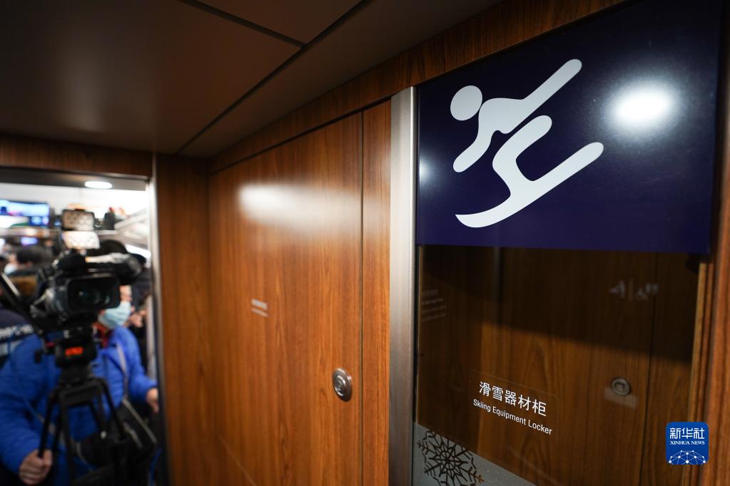这是1月6日拍摄的G9981次北京冬奥列车内设置的滑雪器材柜。 新华社记者 鞠焕宗 摄