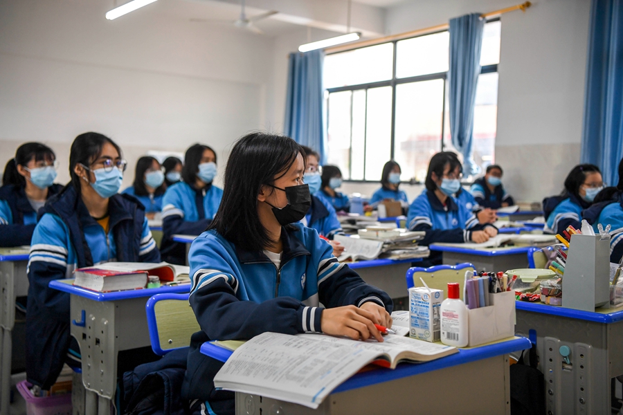 ↑1月5日,东兴中学高三学生在上课。