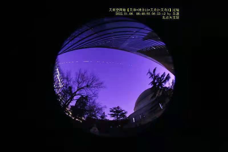 1月6日,中国空间站组合体过境北京上空。(朱进 摄)