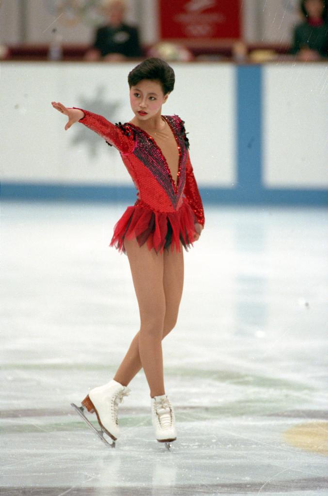 1992年2月21日,陈露在法国阿尔贝维尔举行的第16届冬季奥运会上。(传真照片)
