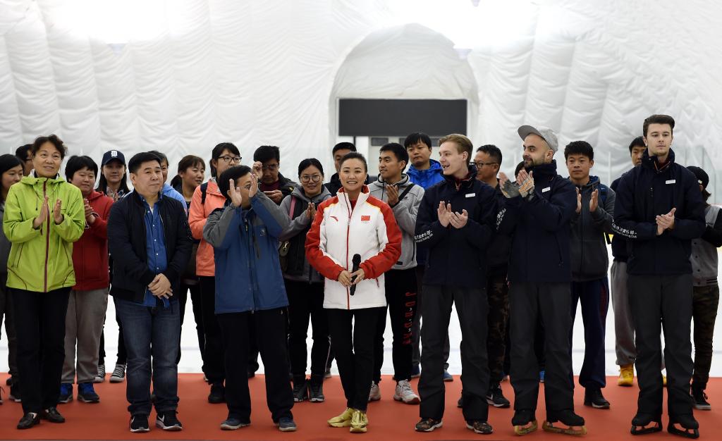 2017年4月9日,陈露“校园冰雪计划”朝阳站暨冰雪公益开放日活动在京启动。新华社记者贾宇辰摄