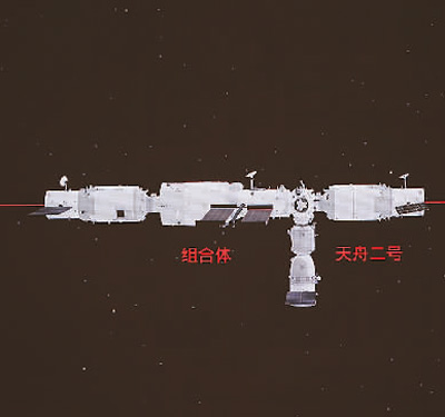 天舟二号货运飞船与空间站组合体精准完成前向交会对接。新华社记者 郭中正摄