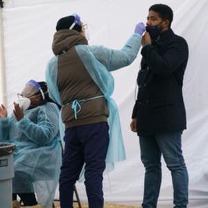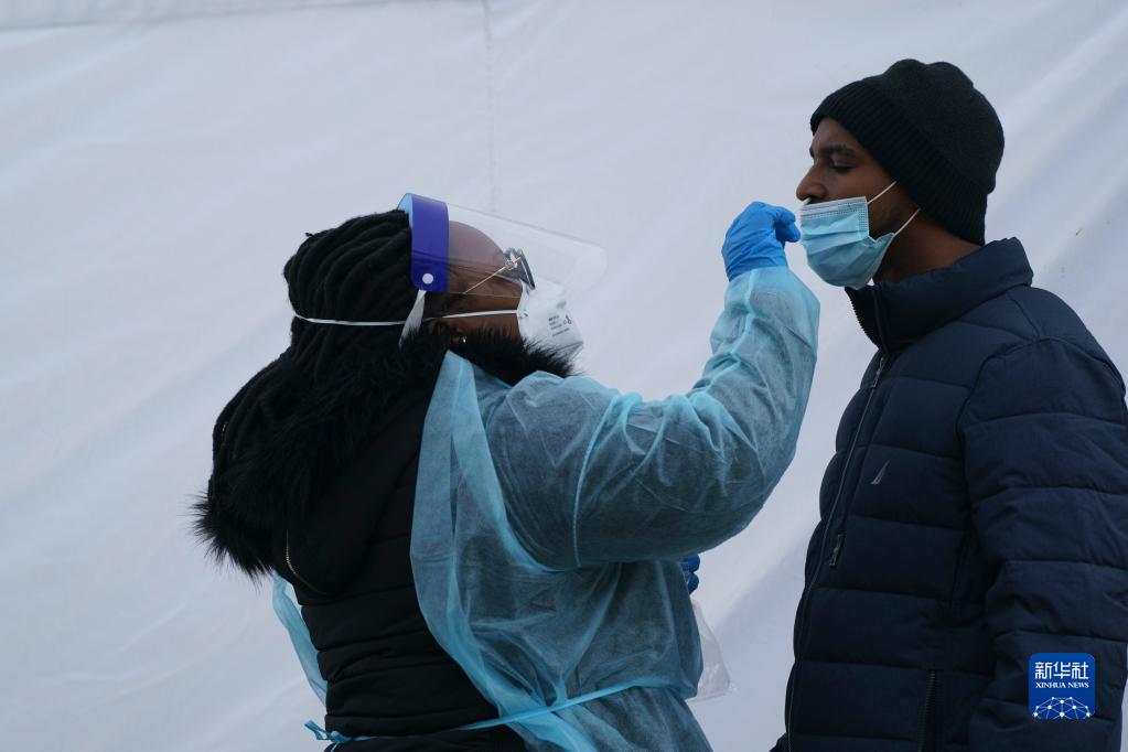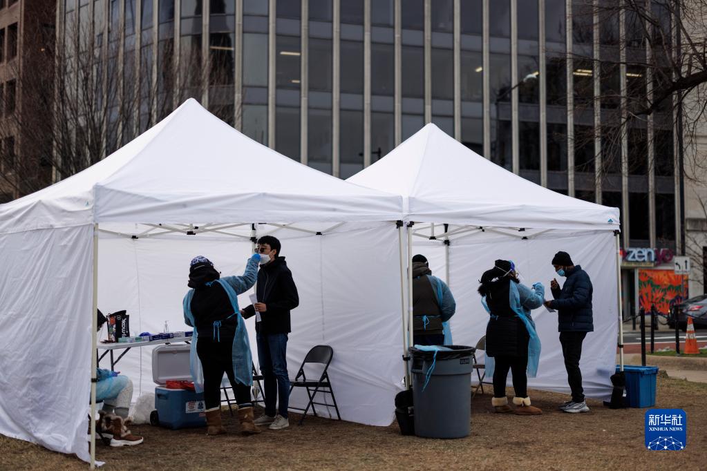 1月13日,医护人员在美国首都华盛顿一处新冠病毒检测点为检测者采样。新华社发(沈霆摄)