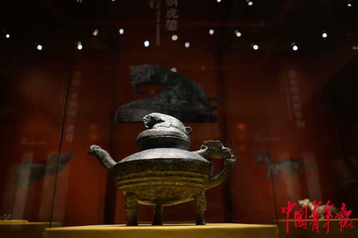 1月19日,北京,中国国家博物馆,铸造于西周时期的青铜重器“虎鎣”。它曾经是清代皇家园林圆明园的藏品,近代流落异邦,漂泊百余年,2018年归国,入藏国家博物馆。为迎接壬寅虎年的到来,中国国家博物馆举办“瑞虎佑安——二〇二二新春展”。该展从信仰礼制、历史文化、艺术生活等方面展示了虎的历史、文化和与虎有关的节俗信仰。