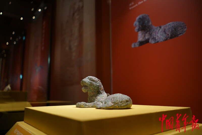 1月19日,北京,中国国家博物馆,“瑞虎佑安——二〇二二新春展”上展出的西汉年间错金“邓市臣”铜卧虎。本次展品上起商代,下迄21世纪初,既有金玉璀璨、精工细作的贵胄用器,亦有粗陶灰瓦、朴拙可爱的市井遗存,品类丰富,从文化的各个侧面反映出中华民族源远流长、延绵不绝的虎文化。