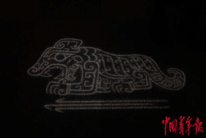 1月19日,北京,中国国家博物馆,“瑞虎佑安——二〇二二新春展”上,展厅的地面用灯光投射出虎符的形状。在古代,虎的形象常出现在玉佩、枕头这类贴身使用的生活器物上,也出现在孩童服饰、门头墙上,表达人们希望借助虎威驱除邪祟、保佑平安的心愿,以及对未来顺祥生活的祈福。