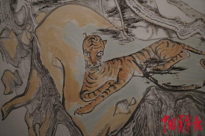 1月19日,北京,中国国家博物馆,“瑞虎佑安——二〇二二新春展”上展出的《溪源虎啸图》局部。